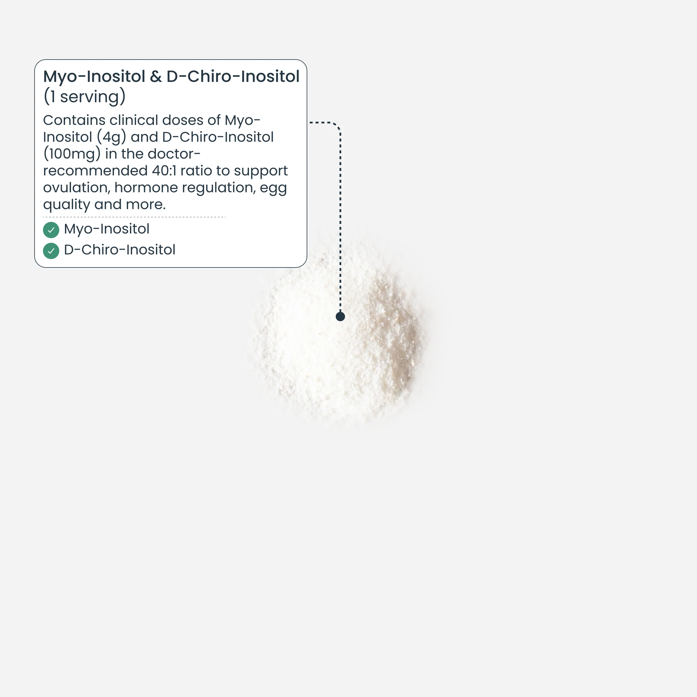 - Contains clinical doses of Myo-Inositol (4g) and D-Chiro-Inositol (100mg) in the doctor-recommended 40:1 ratio